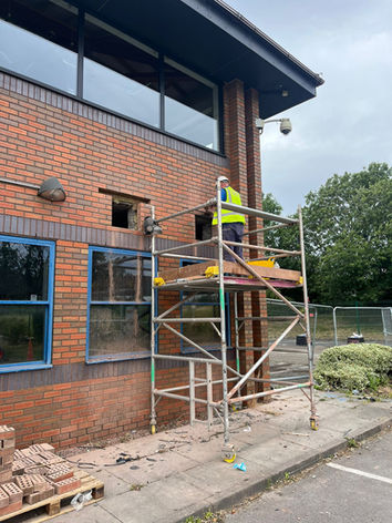 How do you remove heavy internal fabric without destabilising the rest of the building? Our dismantling and deconstruction scope at One School Global focused on selective removal to create functional, reconfigured spaces. Internal block walls were dismantled to open up the new bathroom areas, and an internal partition separating the downstairs plant room from the main area was carefully taken out to create a generous, unobstructed space. We also removed the glazed front entrance canopy — a complex sequence of safe dismantling that required temporary works and lift planning. To accommodate new ventilation plant, our teams cut 28 openings through brick and block on both sides of the building, accurately sized and positioned to the client’s mechanical design. Every cut and removal was planned with temporary support, dust control and access management in mind, ensuring adjacent finishes and services remained protected.